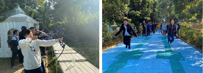 團建活動在趣味比賽中拉開帷幕,通天塔、勇闖指壓板、射箭等比賽環(huán)環(huán)相扣,精彩紛呈,員工們在享受比賽帶來的歡樂的同時,也充分展現(xiàn)著互幫互助,協(xié)同奮進的良好風貌。