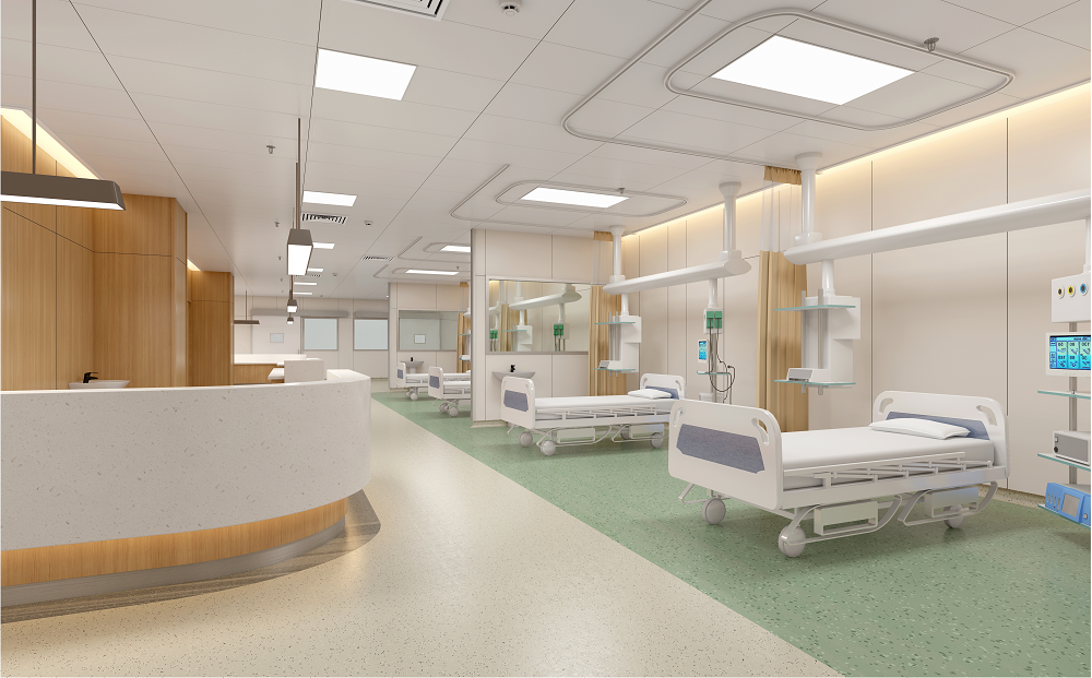 項目規(guī)劃中包括建立一間雜交一體化手術(shù)室,同時在手術(shù)部門設(shè)置7間Ⅰ級手術(shù)室和11間Ⅲ級手術(shù)室,以及5間DSA手術(shù)室。此外,還配備了40張ICU病床,以及若干供應(yīng)室和輔助用房。