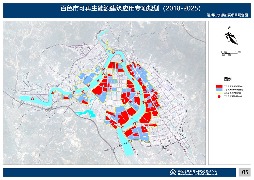 本規(guī)劃大規(guī)模應(yīng)用江水源熱泵。劃針對(duì)百色市獨(dú)特的豐富水源——右江水系,專門制作江水源熱泵規(guī)劃專篇,研究江水源熱泵效率的各影響因子,以取排水點(diǎn)互不干擾為原則,科學(xué)排布取排水點(diǎn)。并根據(jù)建筑物布置確定江水源熱泵站點(diǎn)位置。