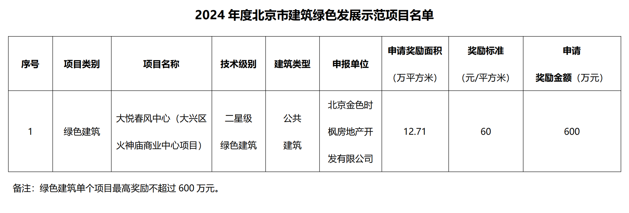 近日,由中國(guó)建技承擔(dān)咨詢的北京大興大悅春風(fēng)中心項(xiàng)目通過(guò)了北京市綠色建筑標(biāo)識(shí)獎(jiǎng)勵(lì)資金審核,獲得了封頂600萬(wàn)的市級(jí)資金獎(jiǎng)勵(lì),成為北京市2024年唯一一個(gè)獲得市級(jí)綠色建筑獎(jiǎng)勵(lì)資金的項(xiàng)目。