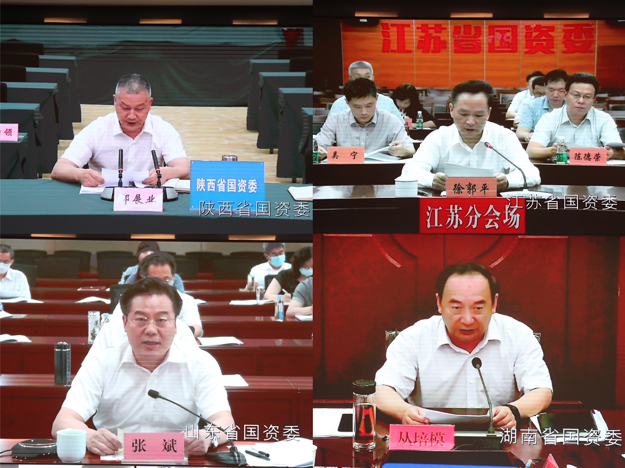 會上,陜西、江蘇、山東、湖南等4省國資委主要負(fù)責(zé)同志通過視頻會議系統(tǒng)作了交流發(fā)言。國務(wù)院國資委總會計師、副秘書長,駐委紀(jì)檢監(jiān)察組,各廳局、直屬事業(yè)單位負(fù)責(zé)同志在主會場,各省、自治區(qū)、直轄市及計劃單列市和新疆生產(chǎn)建設(shè)兵團(tuán)國資委負(fù)責(zé)同志在當(dāng)?shù)胤謺鰠⒓訒h。