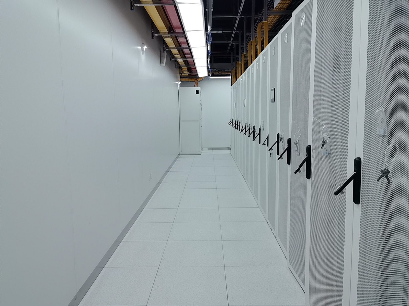 通過(guò)部署華為一體化模塊化UPS,我們實(shí)現(xiàn)了設(shè)備空間占用的顯著節(jié)約、連接線纜的減少以及系統(tǒng)可靠性的提升。維諦品牌的微模塊成套系統(tǒng),包括機(jī)柜、精密空調(diào)、動(dòng)環(huán)監(jiān)控和電池監(jiān)控等組件,不僅系統(tǒng)集成度高,而且可靠性強(qiáng),其軟件平臺(tái)的開(kāi)發(fā)響應(yīng)也十分及時(shí)。西門(mén)子的密集母線和智能小母線系統(tǒng),集成了母線測(cè)溫和在線監(jiān)控功能,進(jìn)一步增強(qiáng)了系統(tǒng)的可靠性。封閉熱通道的設(shè)計(jì),確保了系統(tǒng)擁有充足的冷量?jī)?chǔ)備,從而提高了容災(zāi)能力。封閉通道的玻璃觀察地板和內(nèi)部管道的PVC彩殼包覆,不僅保證了整體風(fēng)格的統(tǒng)一和協(xié)調(diào),還提升了美觀度。仿真測(cè)試機(jī)房3,一個(gè)280平方米的屏蔽機(jī)房,其頂面殼體設(shè)計(jì)為平頂,并且封閉熱通道采用了95吋LED顯示屏整體式移門(mén),極大地提升了觀摩機(jī)房的視覺(jué)效果。在整體顏色管理方面,我們采用了紅/黃雙色對(duì)供配電A/B路、密集母線、智能小母線、電力電纜、PDU外殼等進(jìn)行區(qū)分,確保了清晰醒目。此外,采用彩鋼板墻面和夾心彩鋼板頂面,有效提升了機(jī)房的潔凈度和防塵能力。