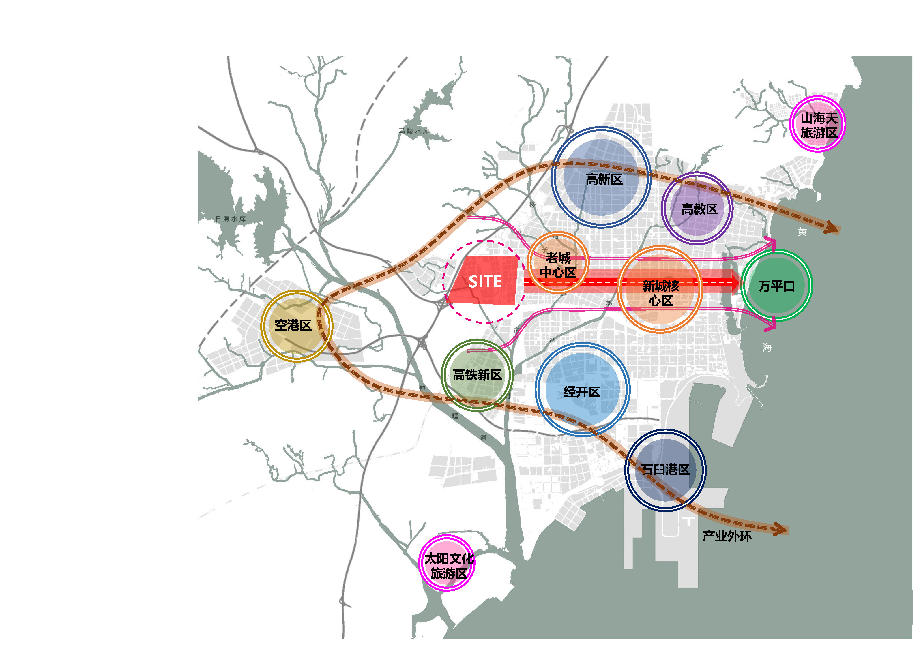 東港城西片區(qū)位于日照西部門戶,東臨老城中心,南臨高鐵片區(qū)、西有空港新城,北有高新區(qū),總面積7.17平方公里。對(duì)外通過(guò)高速、高鐵、機(jī)場(chǎng)與周邊區(qū)域城市緊密聯(lián)系。對(duì)內(nèi)山東路、海曲路、迎賓路三條東西向城市主干道與城市中心無(wú)縫對(duì)接,南北向合村路、丹陽(yáng)路與北部高新區(qū)、南部經(jīng)開(kāi)區(qū)、臨港區(qū)一體化聯(lián)通。作為城市西部門戶,工業(yè)衰敗、設(shè)施老化、居住品質(zhì)下降已經(jīng)成為當(dāng)?shù)厝说钠毡橛∠?。在新的發(fā)展時(shí)期,城西片區(qū)將承載產(chǎn)城融合的歷史使命,實(shí)現(xiàn)城市品質(zhì)化擴(kuò)容的戰(zhàn)略支點(diǎn),迎來(lái)了實(shí)現(xiàn)歷史性跨越發(fā)展的關(guān)鍵機(jī)遇期。