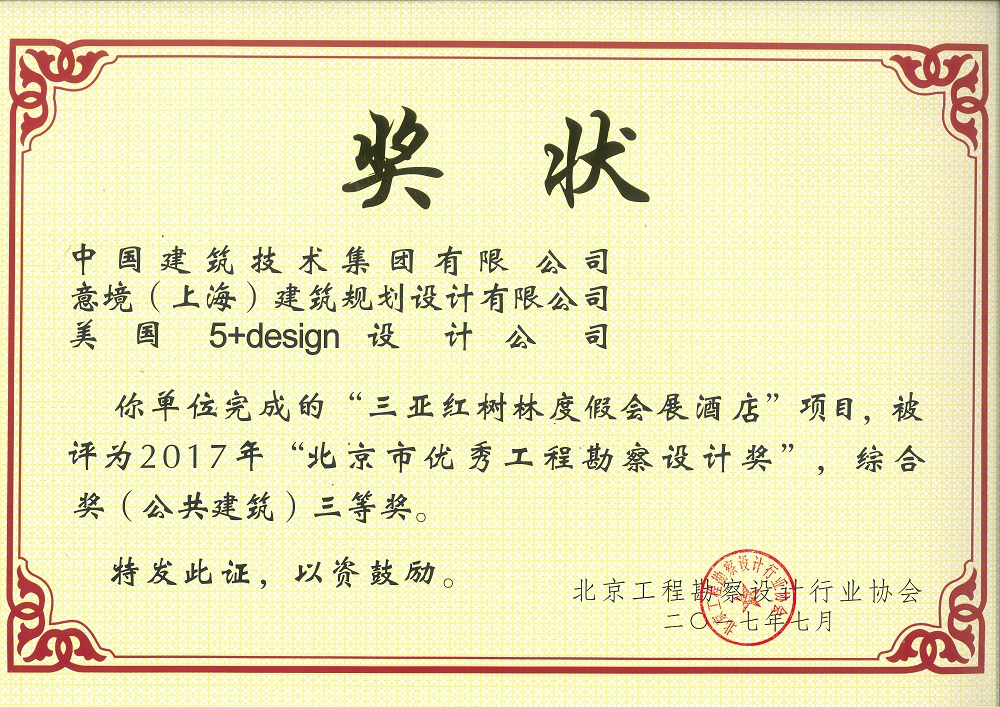 2017年“北京市優(yōu)秀工程勘察設計獎”綜合獎(公共建筑)三等獎