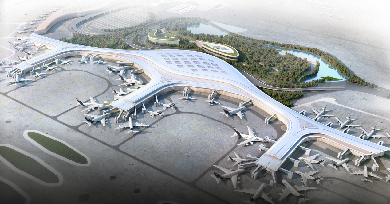 合肥新橋國際機(jī)場T2航站樓總建筑面積約36.98萬平方米,采用“雙港灣+雙L”的建筑構(gòu)型,主樓面寬約400米、進(jìn)深約180米。南、北兩側(cè)指廊寬42米,為國內(nèi)候機(jī)指廊;中指廊寬54米,為國際候機(jī)指廊。主體結(jié)構(gòu)為鋼筋混凝土框架,屋頂為大跨度空間鋼結(jié)構(gòu)體系。